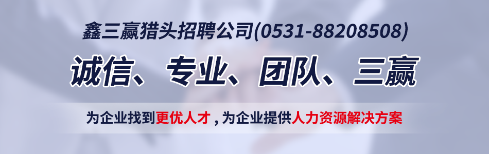 鑫三贏獵頭招聘公司(0531-88208508)是山東本土的知名專業獵頭招聘公司,幫助企業解決中高端招聘難題 ,免費幫助人才推薦更好的工作機會。公司總部位于山東省省會濟南市。我們致力服務于山東省內大中型內外資企業,我們通過對客戶企業的組織結構、相關業務和具體職位的研究、分析,能夠很好的與企業及候選人進行溝通,滿足不同企業對不同種類高級人才的需求,我們的人才儲備來自全國各地(包括和港澳臺同行業合作人才渠道)。我們與多家世界500強、山東知名企業保持著長期獵頭服務戰略合作關系,在山東獵頭業界享有良好的聲譽和口碑。